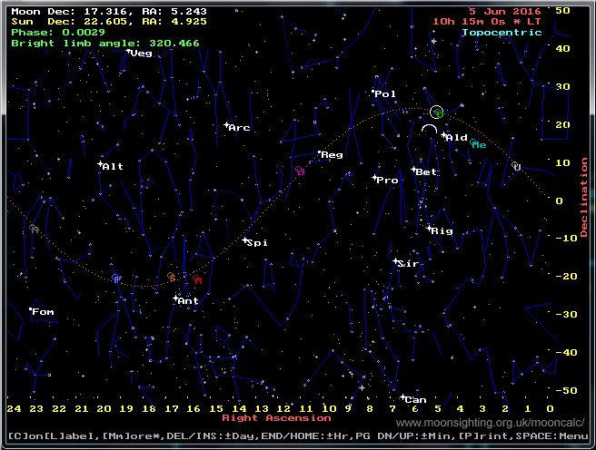Starchart (Dec vs RA) showing sun & moon positions