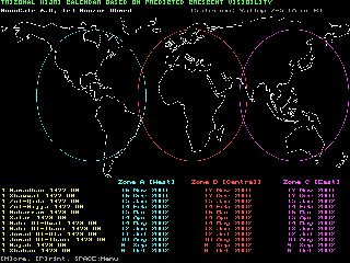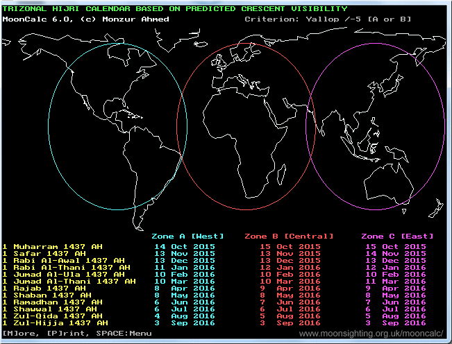 Automatic local and regional (tri-zonal) Hijri calendar tabulation is